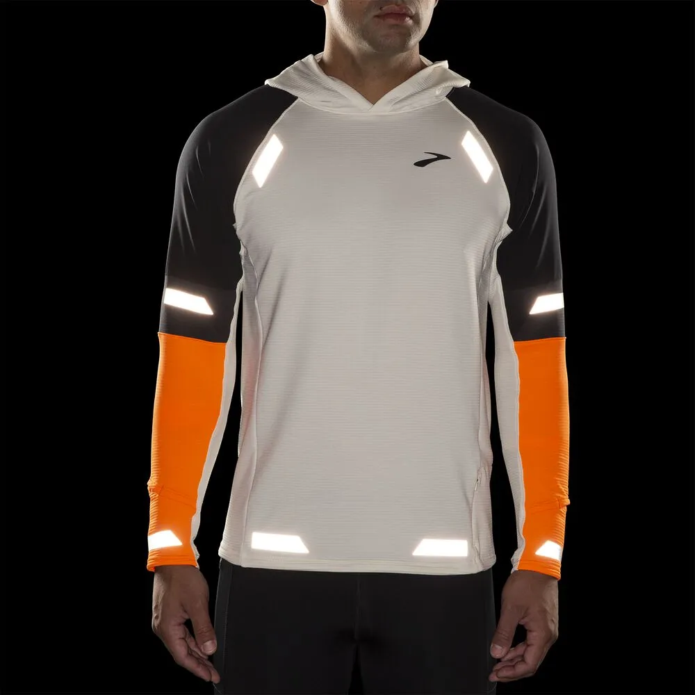 Chilly weather and low light? This men’s thermal hoodie helps you head out for a run before dawn or after dusk thanks to high-visibility design, our GOâ‚‚ Warmᵀᴹ thermal fabric, and run-ready details including a watch window and thumbholes for added comfort.